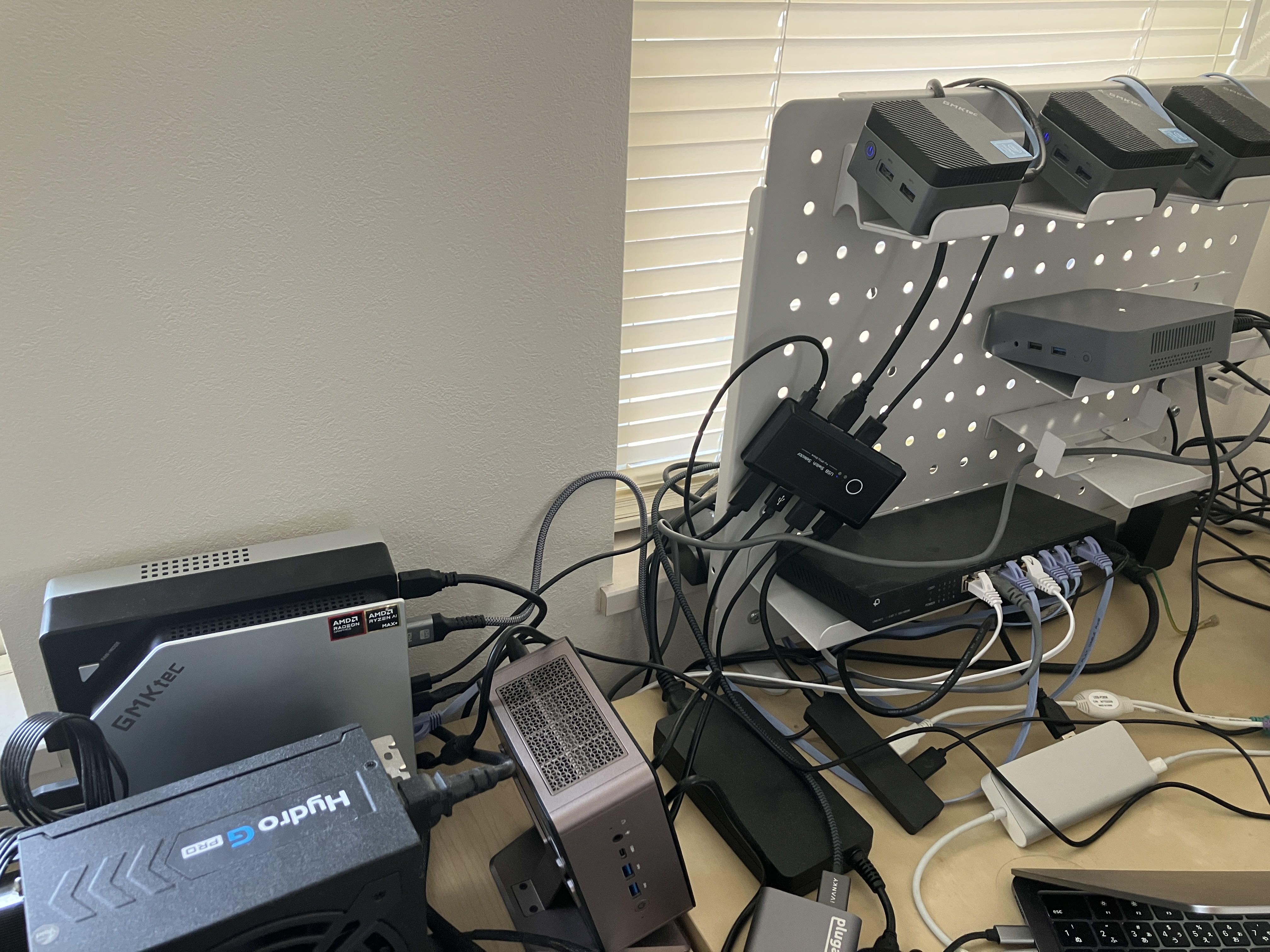 ミニPC群です。proxmoxクラスタを組んで、このブログをホストしたりスマホで撮影した写真を保存しています。