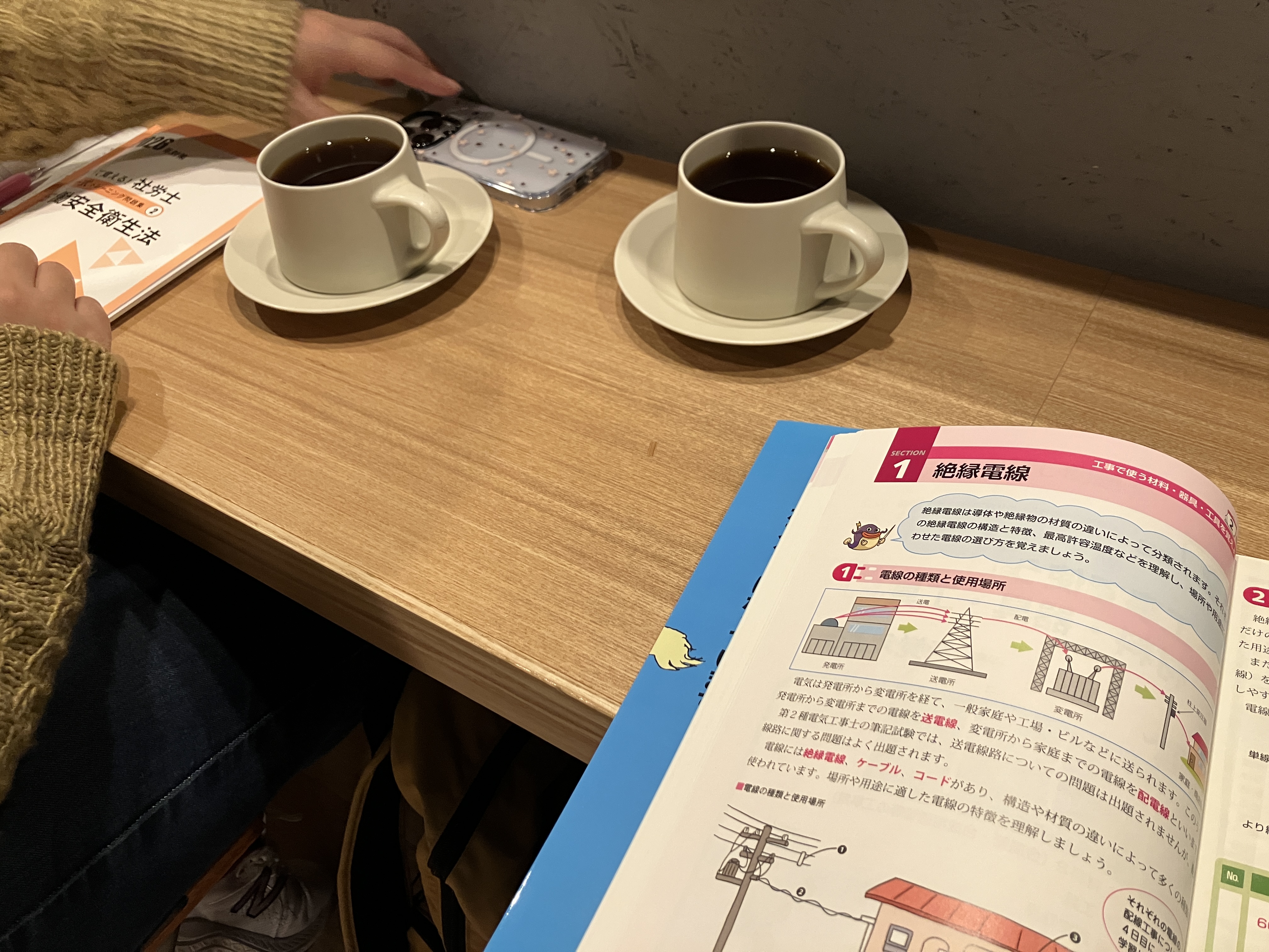 電気工事士2種の勉強を始めました。隣では飼い主も猛勉強!お互い良い刺激になってます。